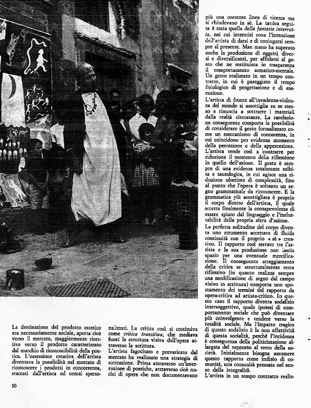 Lo studio delle pubblicazioni italiane di quegli anni offre uno strumento indispensabile per seguire la trasformazione estetica e concettuale dei media d’informazione. La storia dell’arte circa gli anni sessanta e settanta del novecento diventa anche una storia dei risultati estetici raggiunti in quel periodo dai vari operatori del settore (artisti, critici, galleristi, fotografi) rispetto ai media. L’articolo analizza l’ambito ristretto delle riviste d’arte con una serie di esempi che vanno dal 1967 al 1972, mettendo in evidenza le nuove strategie di informazione e la nascita di sperimentazioni che trovano nelle pubblicazioni dei veri e propri luoghi di ricerca estetica. Sono prese in esame alcune riviste specializzate di sperimentazione del rapporto tra artisti ed editoria in quegli anni: Flash Art, edita a Roma; Pallone, pubblicato a Genova dalla galleria La Bertesca; le romane e più politicizzate Cartabianca e Senzamargine; e infine un caso editoriale dei settanta; Data, rivista milanese fondata da Tommaso Trini.