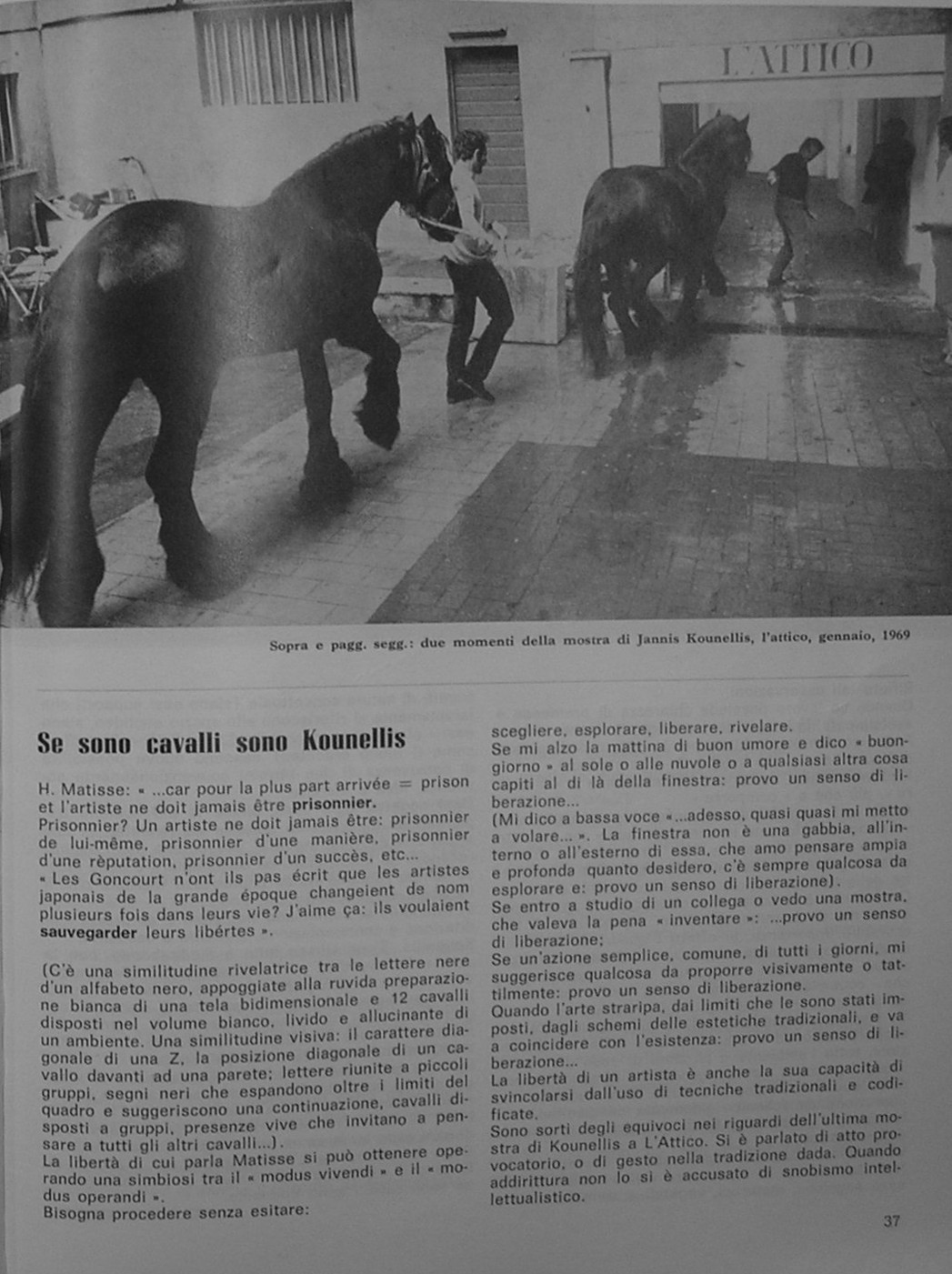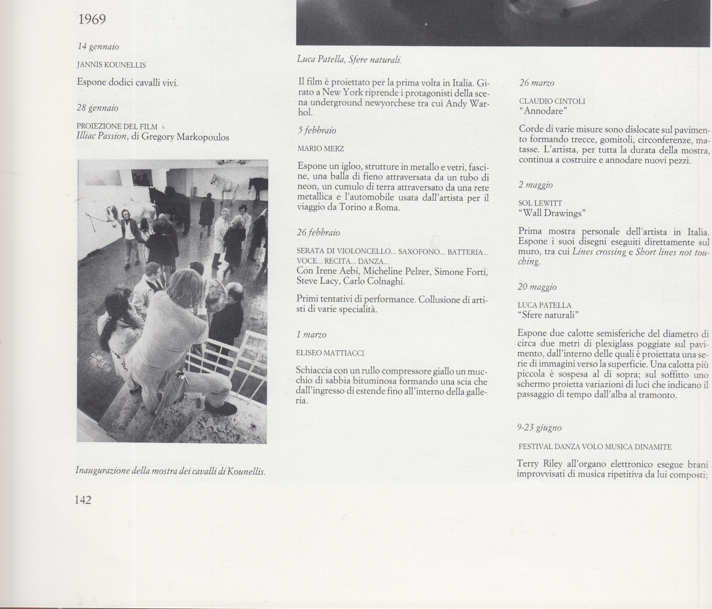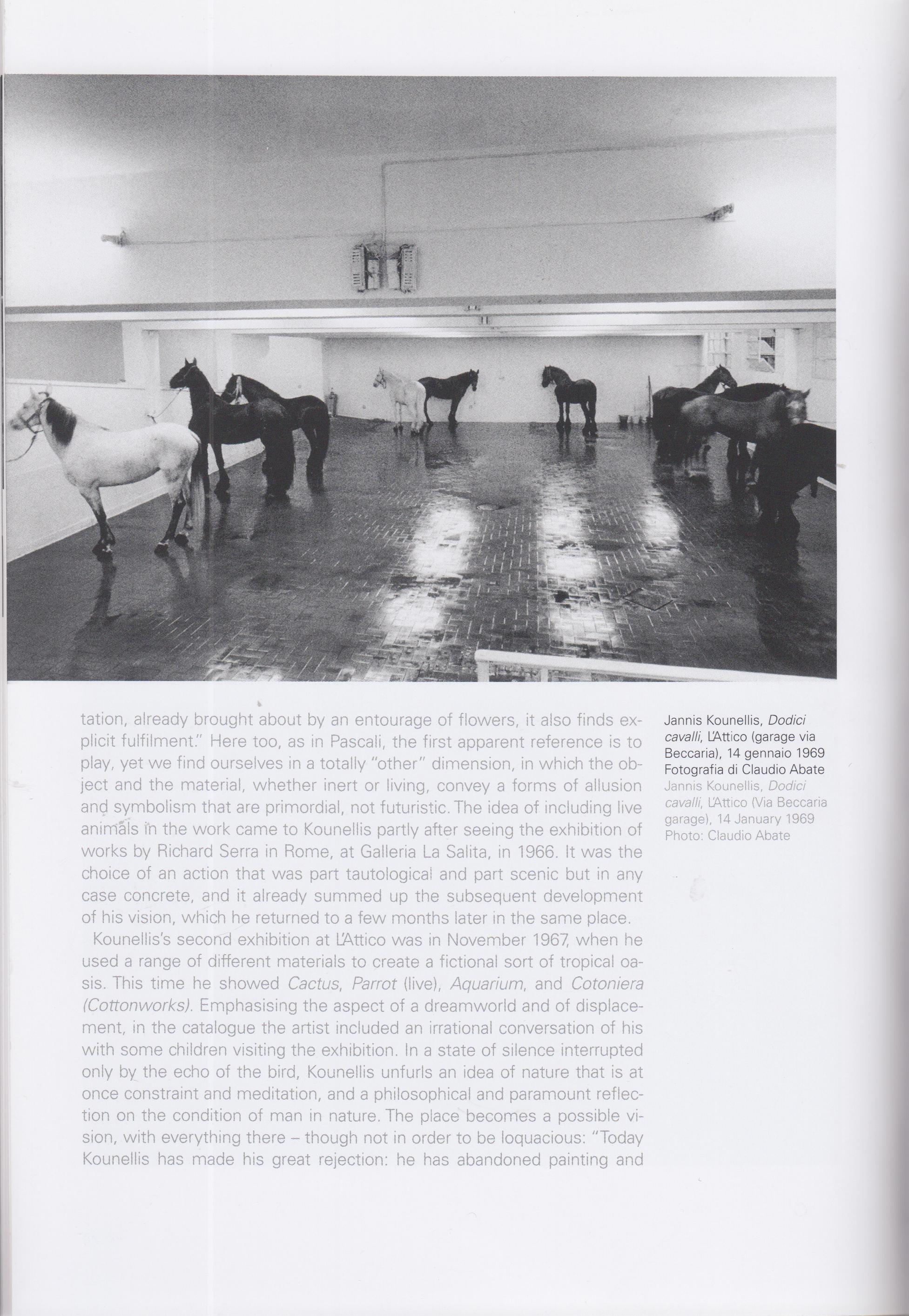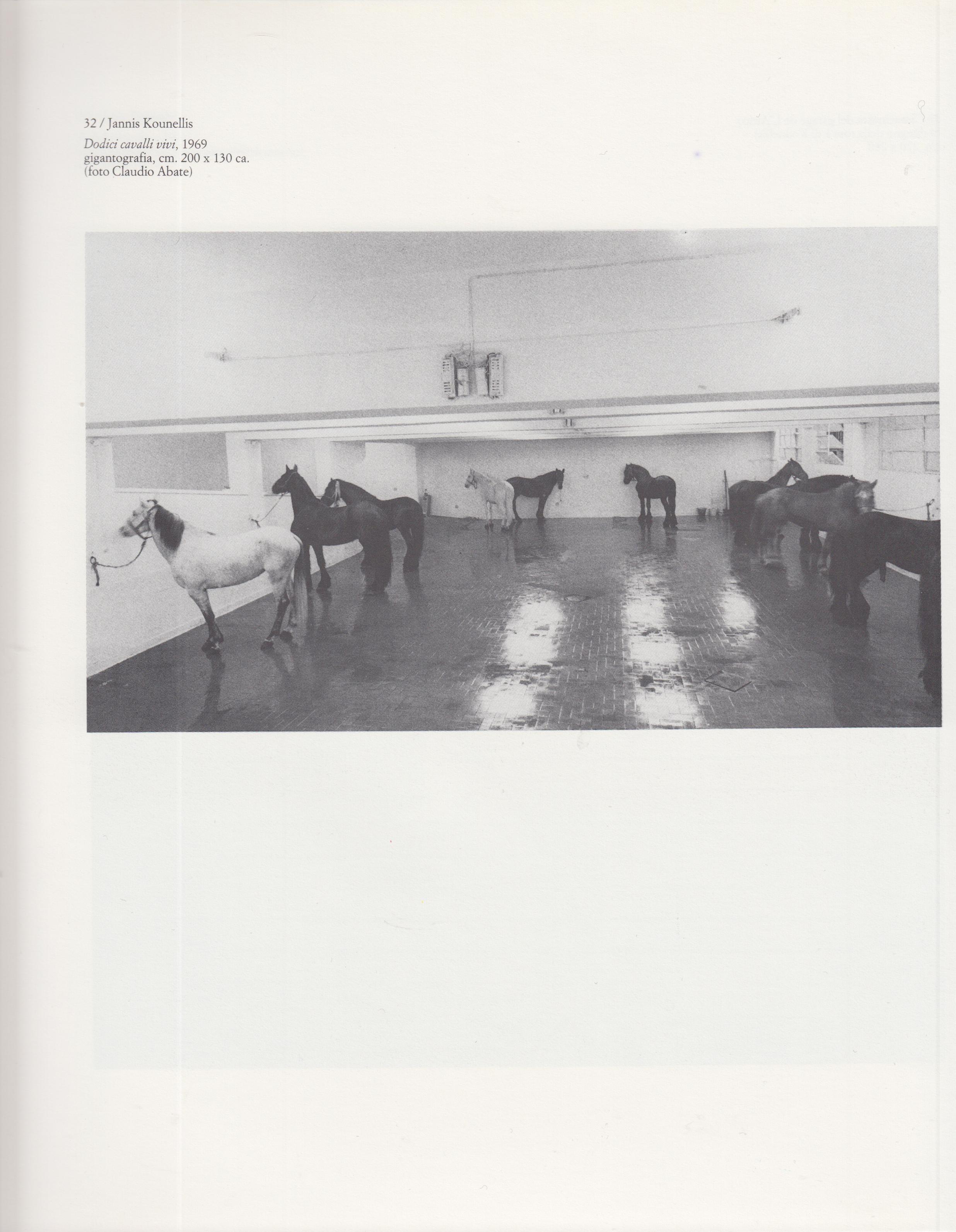 - Claudio Abate, Veduta non rifilata dei Dodici cavalli vivi di Jannis Kounellis, galleria L'Attico (via Beccaria), Roma, 14 [?] gennaio 1969, fotografia b/n.