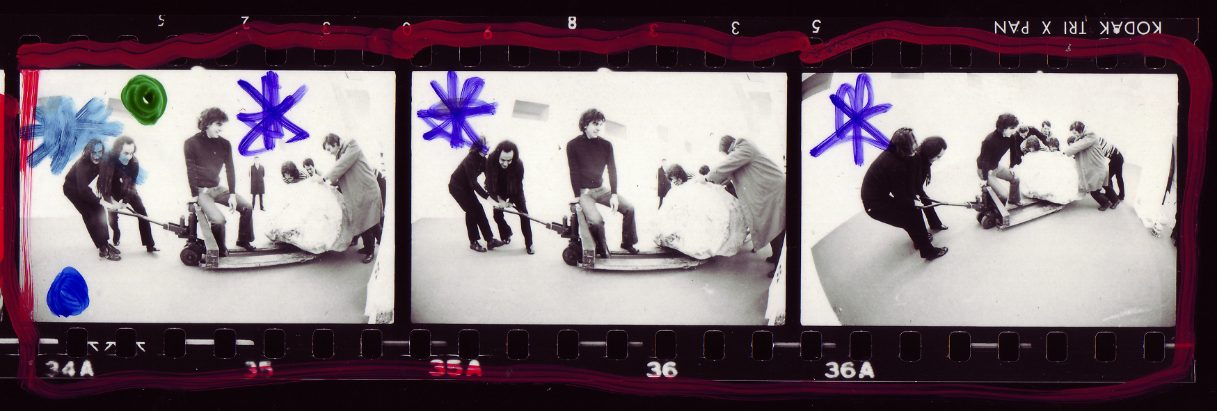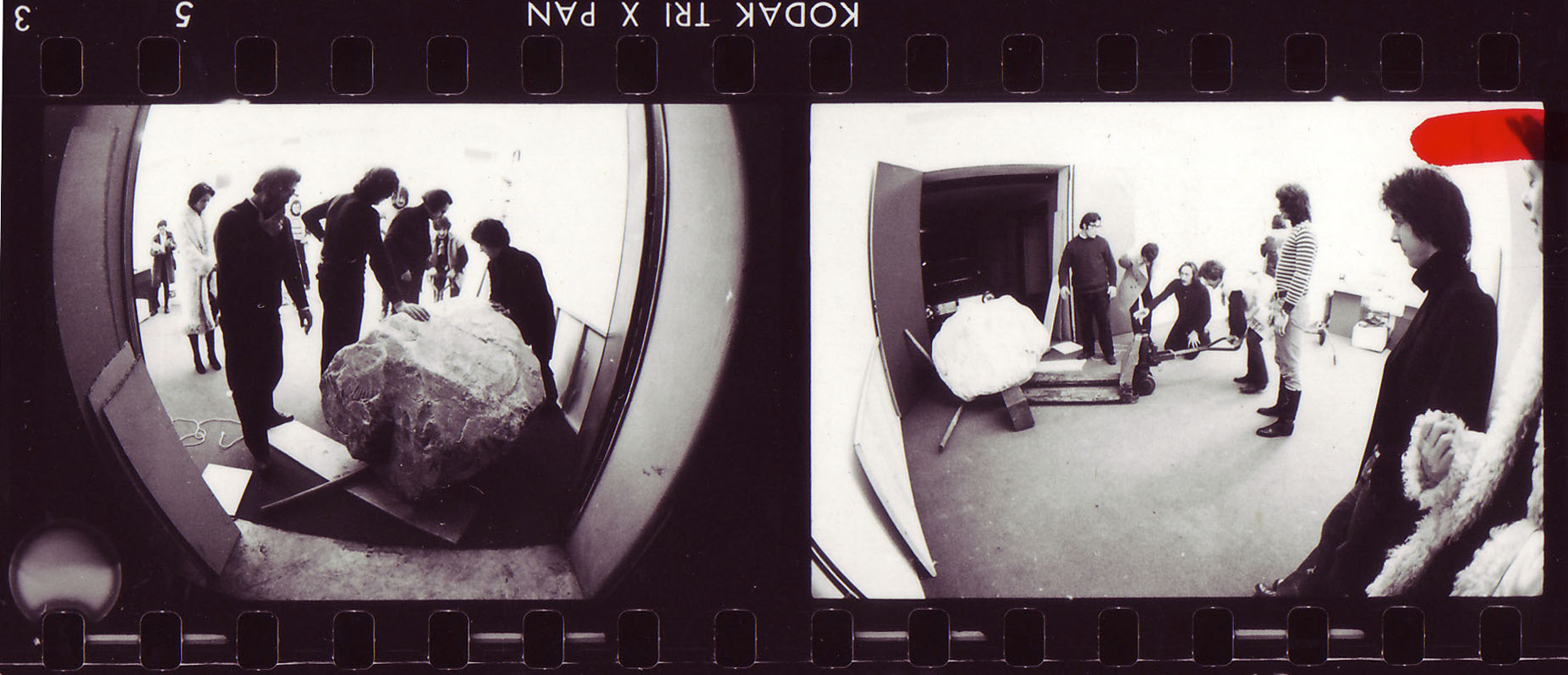 - Enrico Cattaneo, allestimento della mostra di Gino De Dominicis alla galleria Toselli, novembre 1970. Nr. neg. 1945, ingrandimento di un fotogramma del provino su carta. Photo © Enrico Cattaneo, Milano