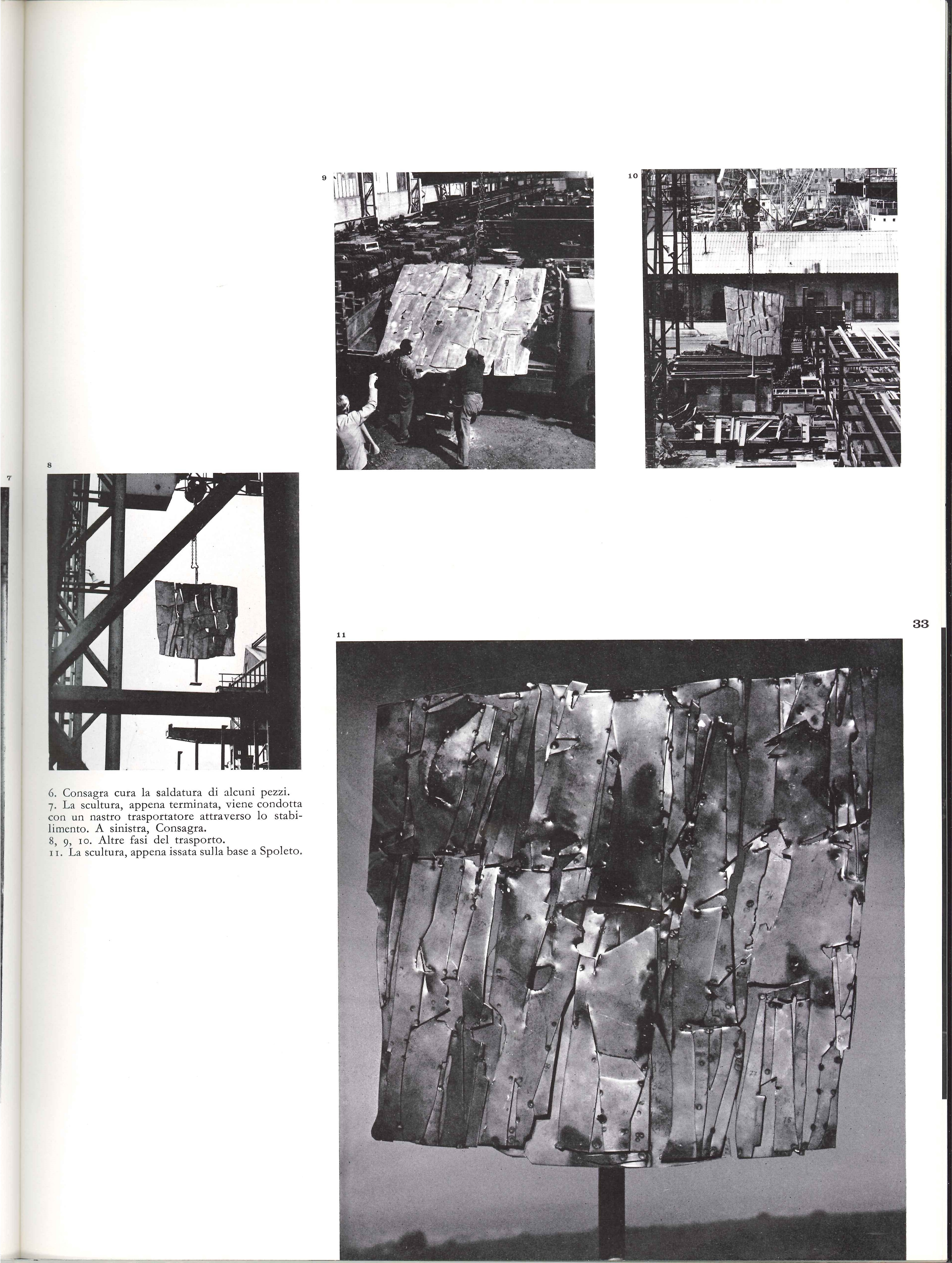 - Ugo Mulas, Pietro Consagra negli stabilimenti Italsider per l’opera Colloquio col vento (1962), due fotografie b/n. Da Metro, 7 (1962): 32.